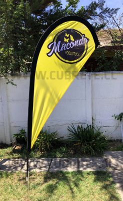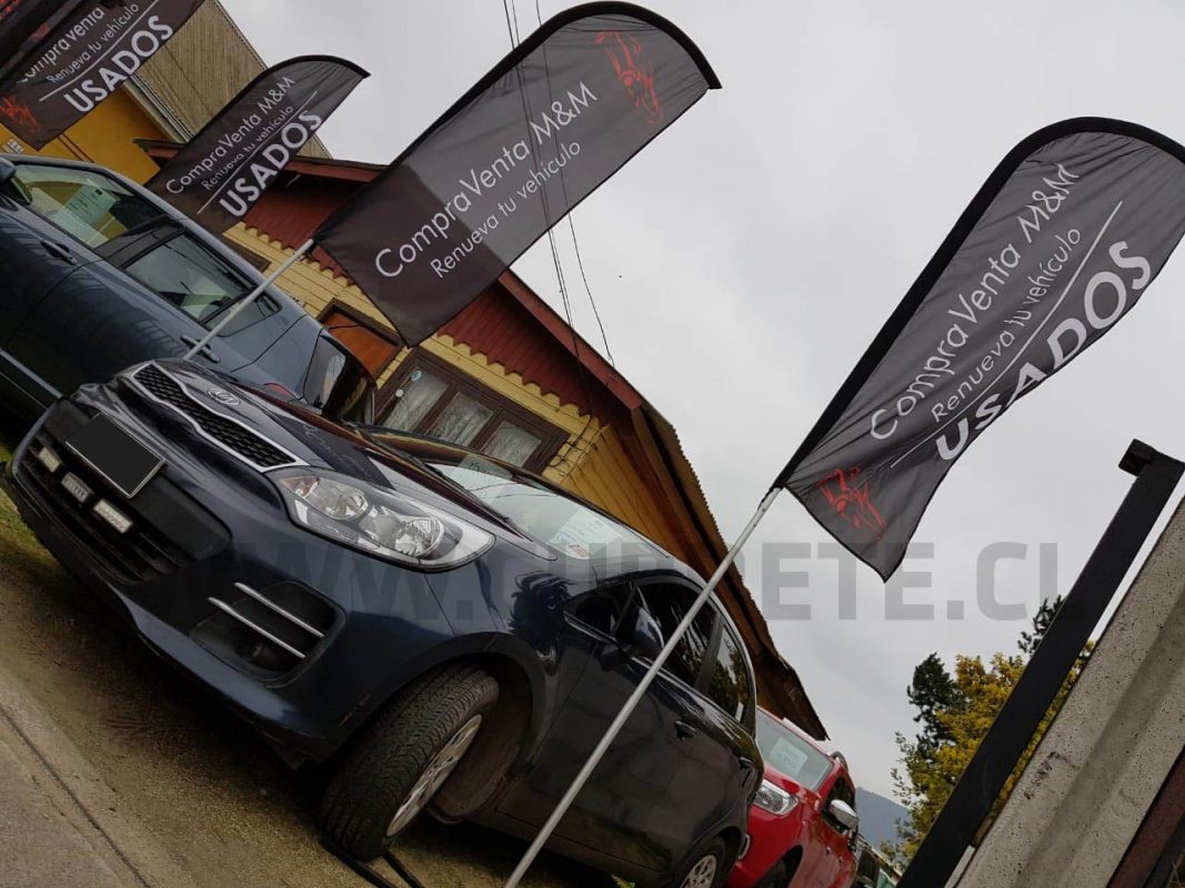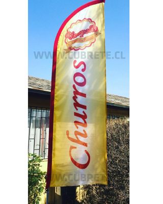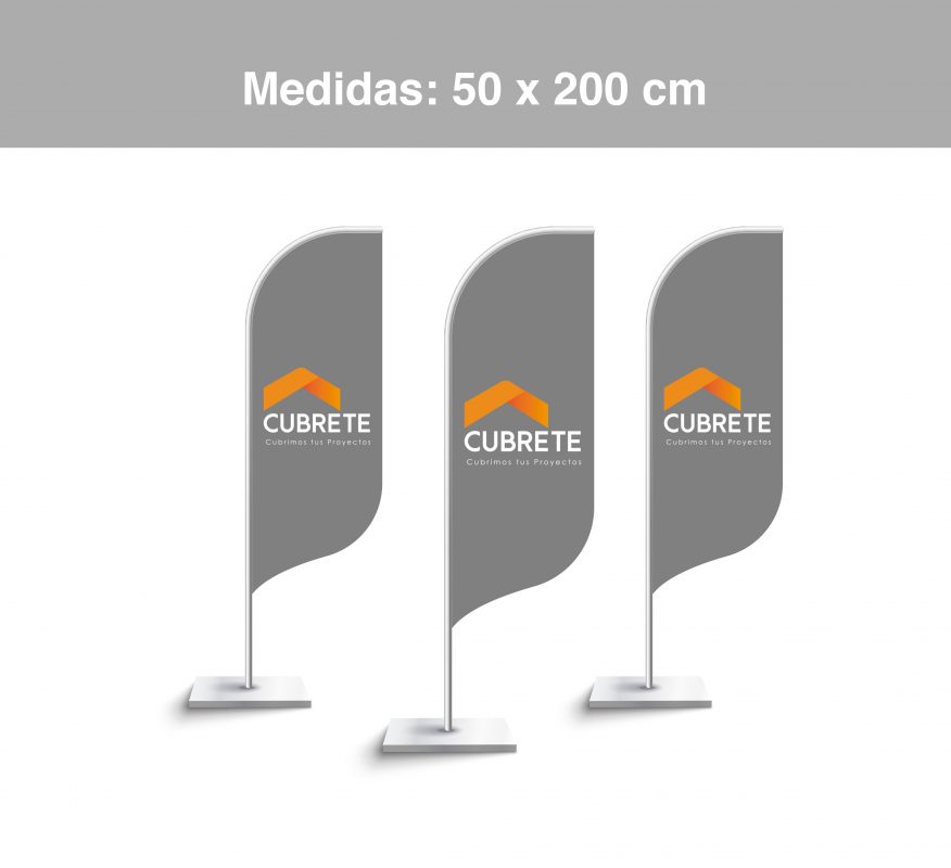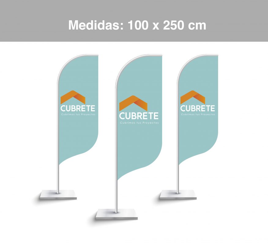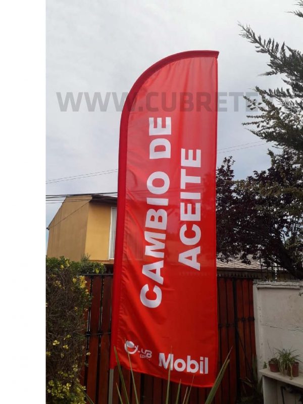 Bandera publicitaria, confeccionada en tela lisa o microperforada 100% poliester, impresión directa en la tela mediante sublimación, logrando un gran acabado de colores, traspaso del color 100 % en el reverso, vaina elasticada para dar una mejor terminación y gancho giratorio para fijar al mástil principal Costuras reforzadas